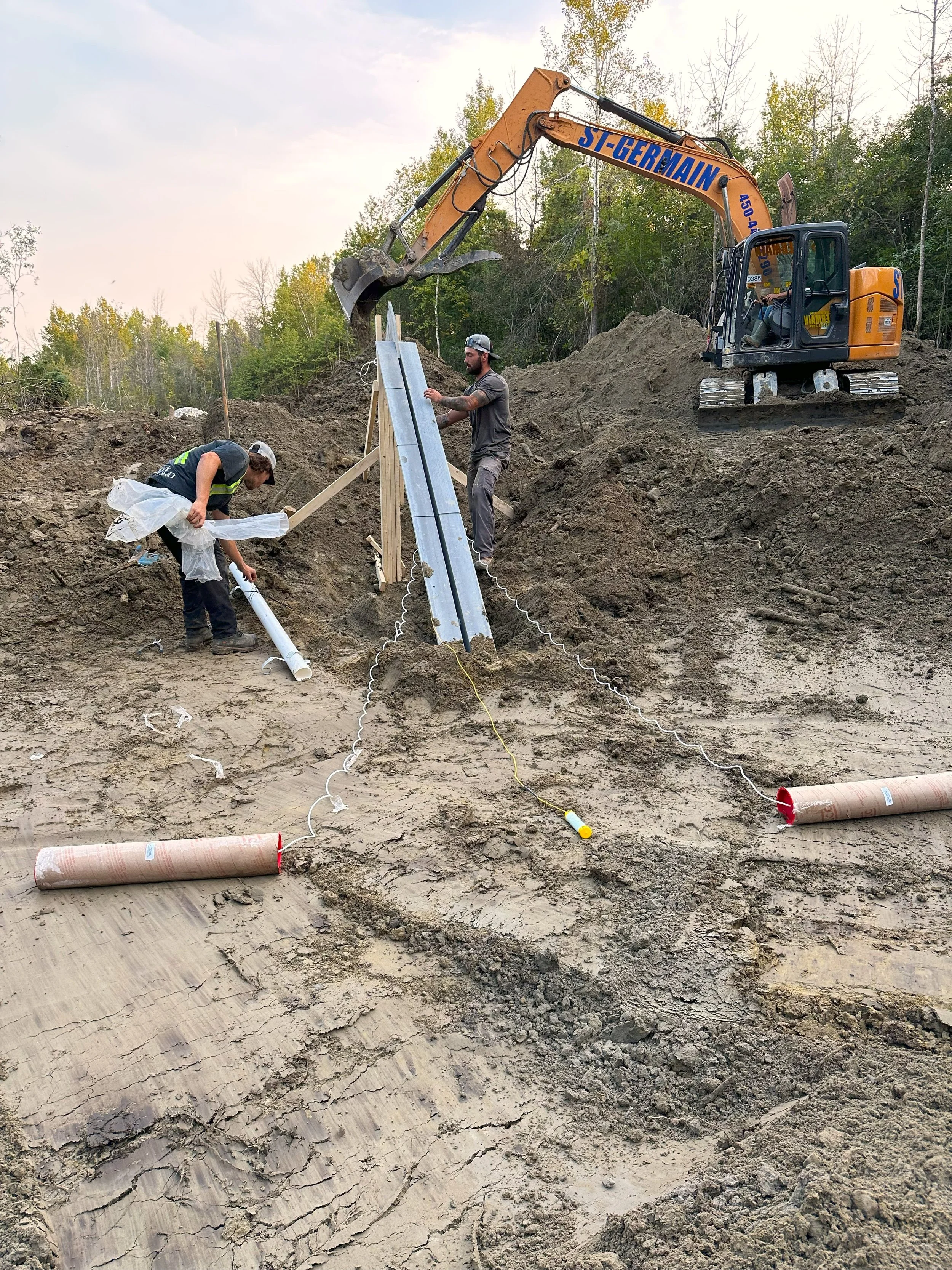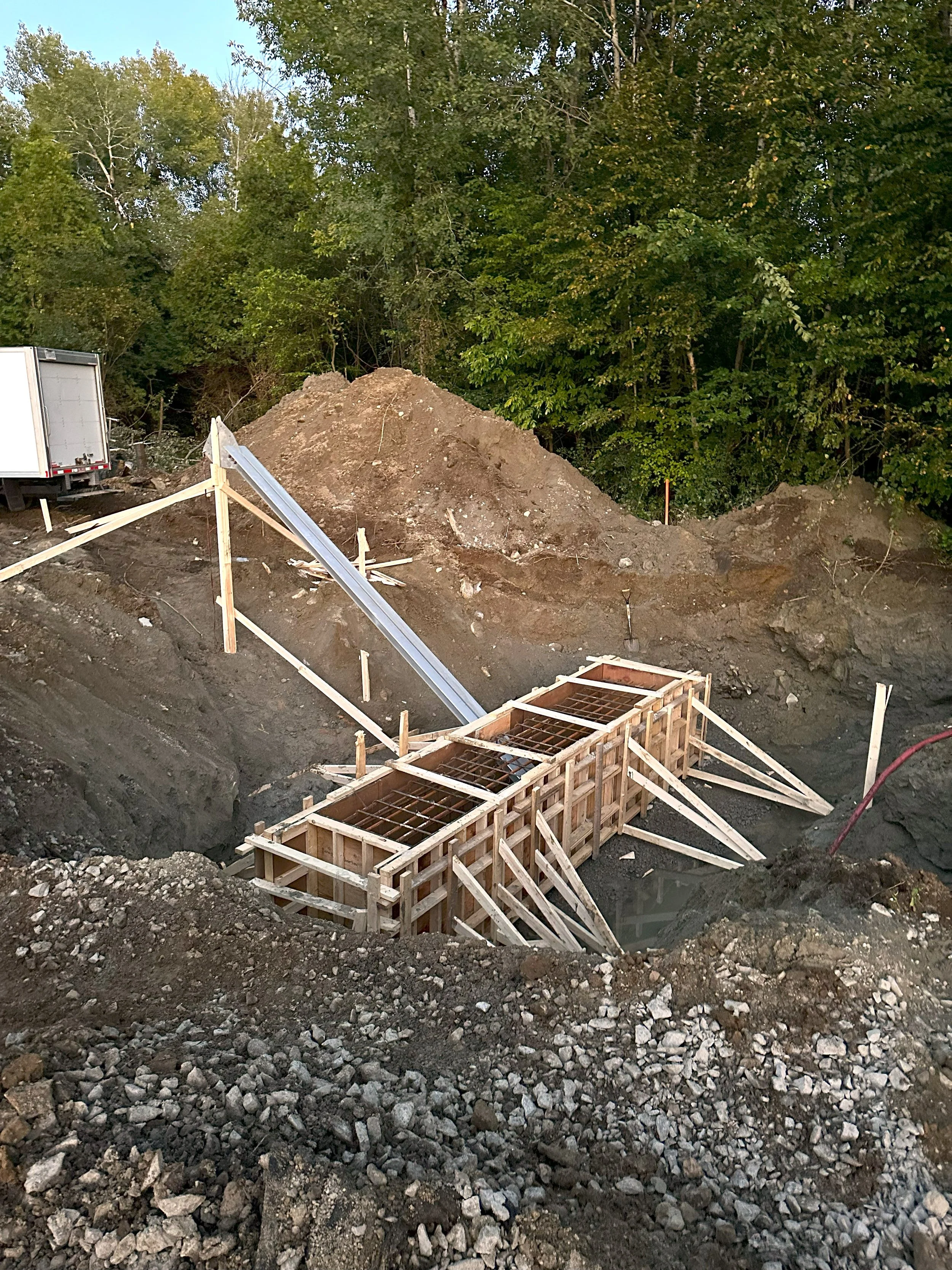 Coffrage pour tour cellulaire 5GGestion du projet jusqu’à la sortie de terre Création du chemin d’accès au site de la tour et défrichage du site Coffrage des fondations et des ancrages de la tour cellulaire